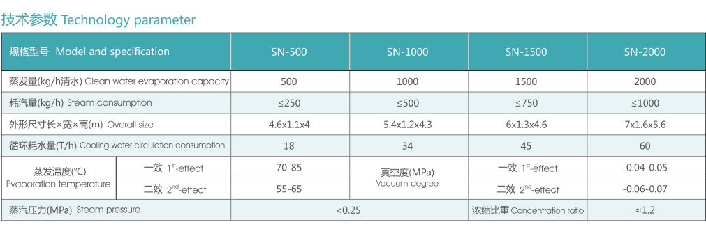1、采用外加熱自然循環與真空蒸發相結合的方式,蒸發速度快,濃縮比重可達1.2。